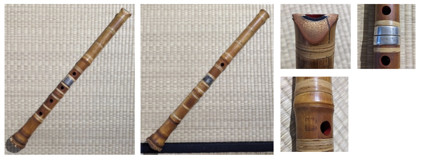 This is a Tozan style flute, well-tuned and with nice tone overall but not particularly strong-playing. The hankō are very worn and difficult to see and were visually enhanced in the image below in order to make them easier to identify.